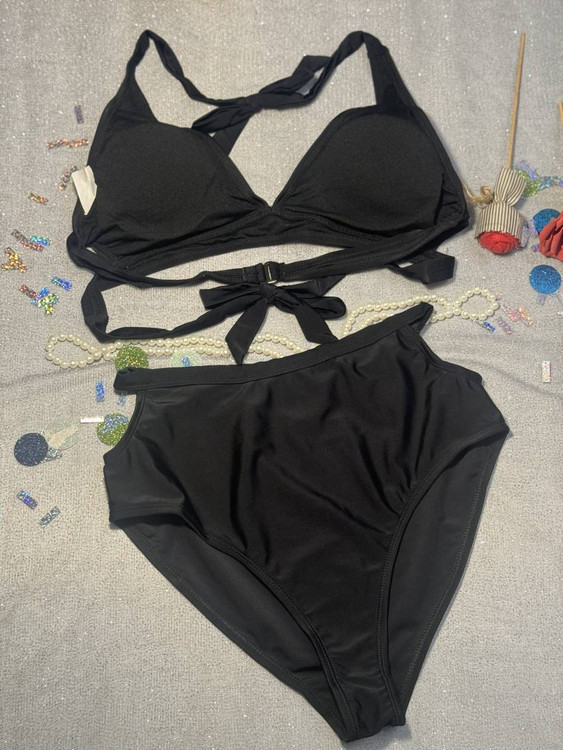مایو ببیکینی دو تیکه پشت گره ای ، شورت بغل طرح دار