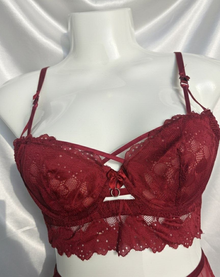 ست تور دانتل در دو رنگ مشکی و زرشکی موجود می باشد.