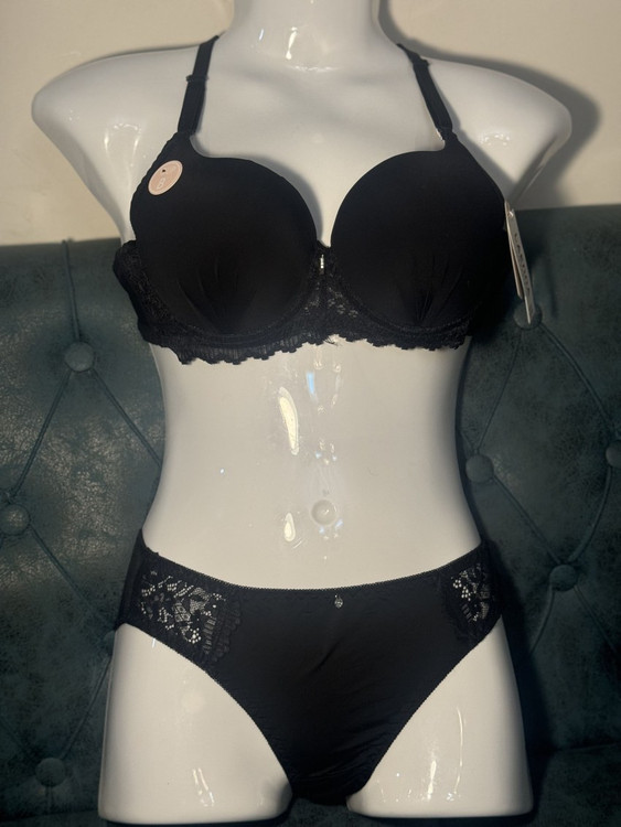 این ست شیک و راحت برند معروف ترکیبی از طراحی مدرن و کیفیت عالی است که هر زن خوش سلیقه ای به آن نیاز دارد . سوتین کاپ Bبا فنر داخلی که کامل ظریف و محکم دوخته شده تا به راحتی از پارچه خارج نشه ، شکل دهی بی نقصی به سینه های شما می دهد و پوش آپ های مخفی آن ، جلوه ای طبیعی و جذاب به شما می بخشد و این دو ویژگی از افتادگی سینه شما جلوگیری می کند . جنس لطیف پارچه ، حس نرمی و راحتی در طول روز به شما می دهد و پشت سوتین ، طرحی متصل به ب طرح بال پروانه از جنس گیپور کار سده که زیبایی و جذابیت این محصول را دو چندان کرده است .